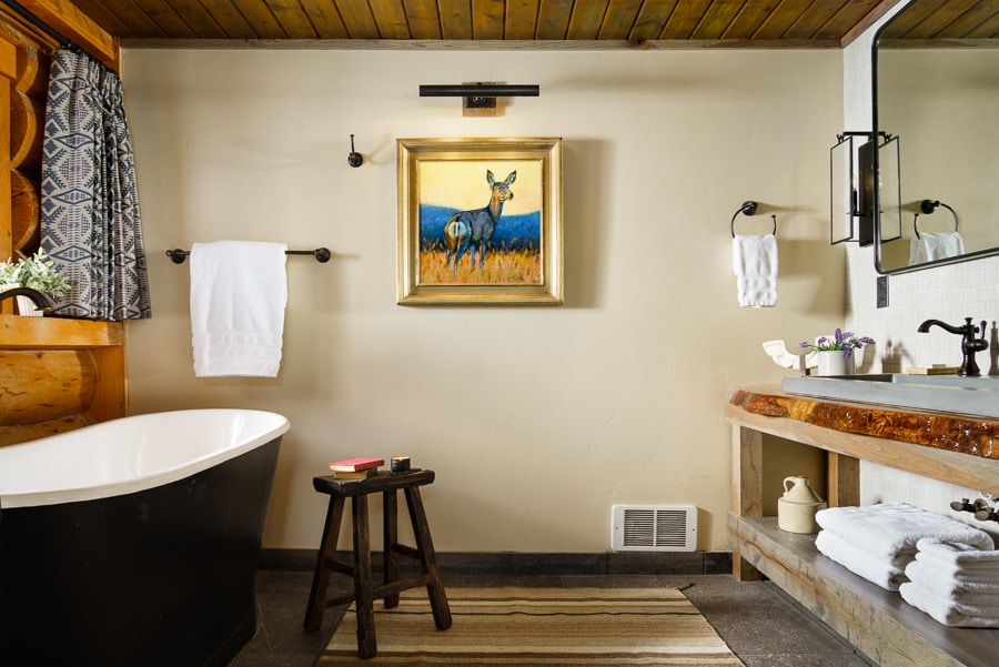 Named for the aspen—one of the West’s most iconic trees, known for its resilience, shimmering leaves, and deeply interconnected groves—this beloved cabin sits perched on a hill, offering space and comfort that keep guests returning. Two decks frame some of the property’s finest vistas.