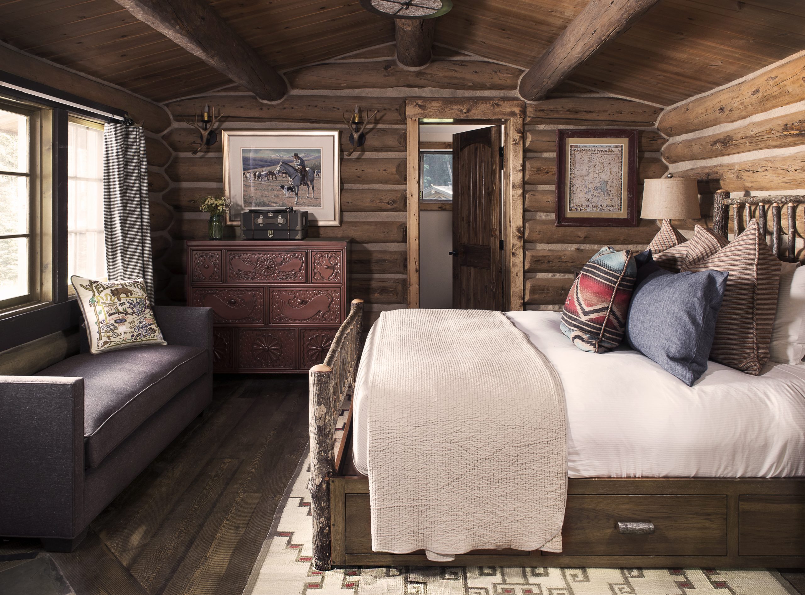 Built from lodgepole pine in 1927, Chipmunk was the ranch’s original “Cook’s Cabin.” Set along the banks North Fork Creek, its weathered logs bear the marks of nearly a century of Montana seasons—long winters blanketed in snow, golden summers alive with birdsong. Inside, the cozy layout offers warmth and comfort with a queen bed positioned to overlook North Fork Creek, sitting area, woodstove, and full bath with tub/shower combination. Step onto the porch at sunrise to watch mist rise from the creek, or at dusk as the Big Sky deepens into indigo. Chipmunk is an intimate refuge where the rhythm of the mountains replaces the rush of time.