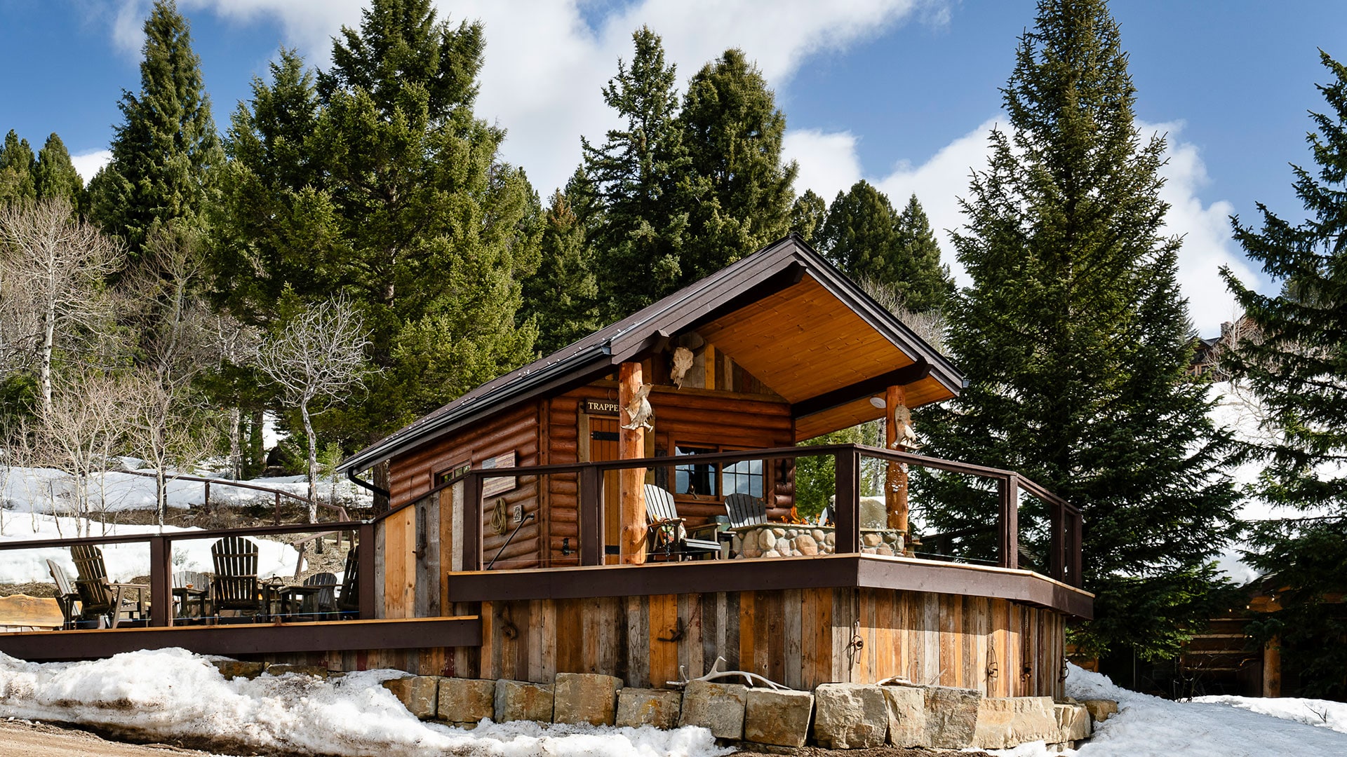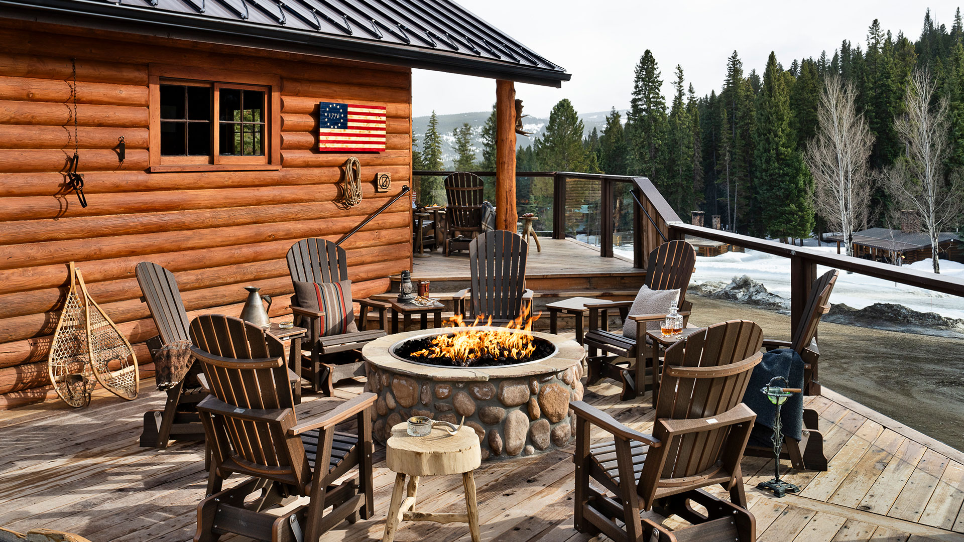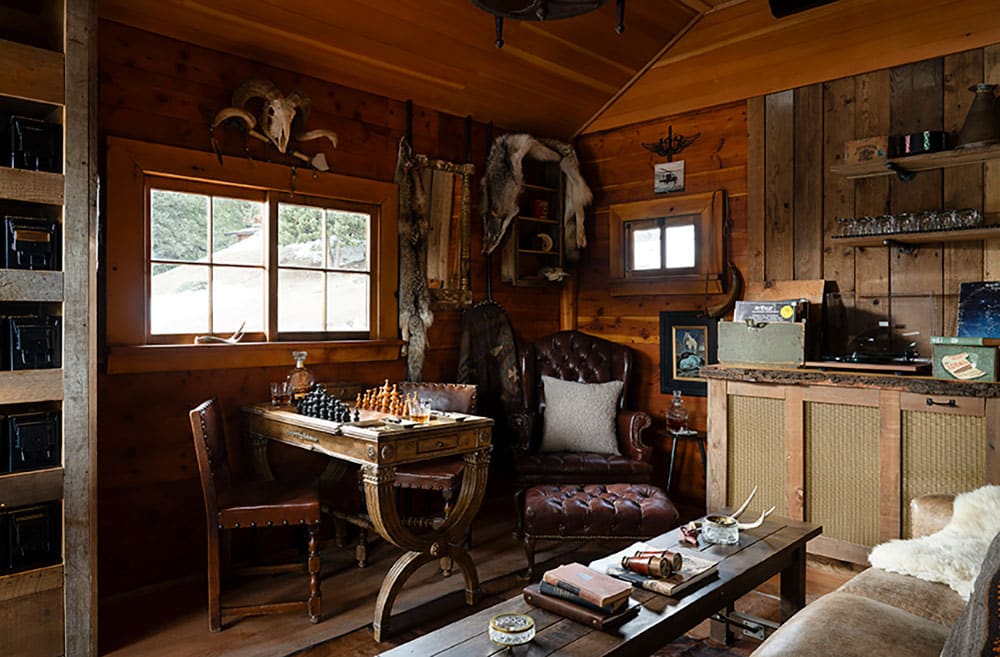 Inside, you’ll find cozy seating, a vinyl record player and music library, rich wood interiors, and a state-of-the-art ventilation system to ensure a perfect smoking environment. The cabin features a wraparound deck with sweeping views.