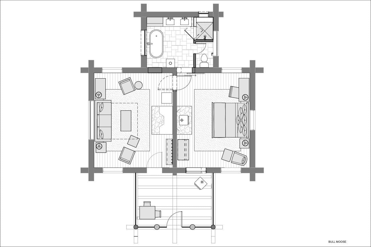 No. Each of our 26 cabins is distinct, ranging from intimate one-bedroom retreats to large multi-bedroom lodges. All cabins share privacy, fireplaces, vinyl record players, and complimentary beverages and snacks provided on check-in day for Base Camp guests.